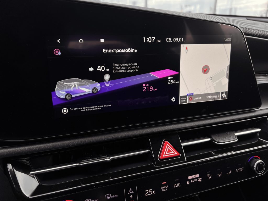 Порт швидкої зарядки CCS, FULL LED, Автоматичне дальнє світло, Навігація, Безключовий доступ, Підігрів сидінь та керма, 2- зонний клімат контроль, Камера заднього виду, Мультикермо, Електропакет, Адаптивний, круїз контроль, Контроль смуг, Парктроніки, AndroidAuto / AppleCarPlay, Датчик світла, Датчик дощу, Тепловий насос, 3-х фазний порт зарядки, Керування з додатку KIA CONNECT